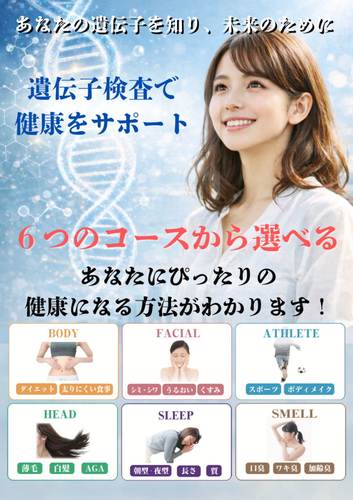 - 変化や実感には個人差があります。 遺伝子検査は「体質を知るためのツール」であり、 生活習慣や取り組み方によって結果は変わってきます。