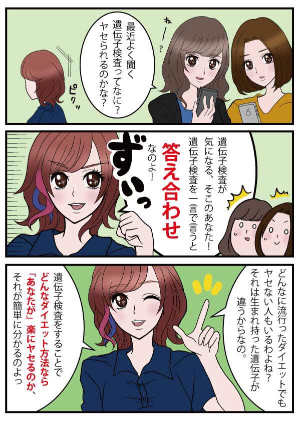 - いいえ、病気の診断や治療を目的とした検査ではありません。 生まれ持った体質や傾向を知り、健康づくりの参考にしていただくための検査です。